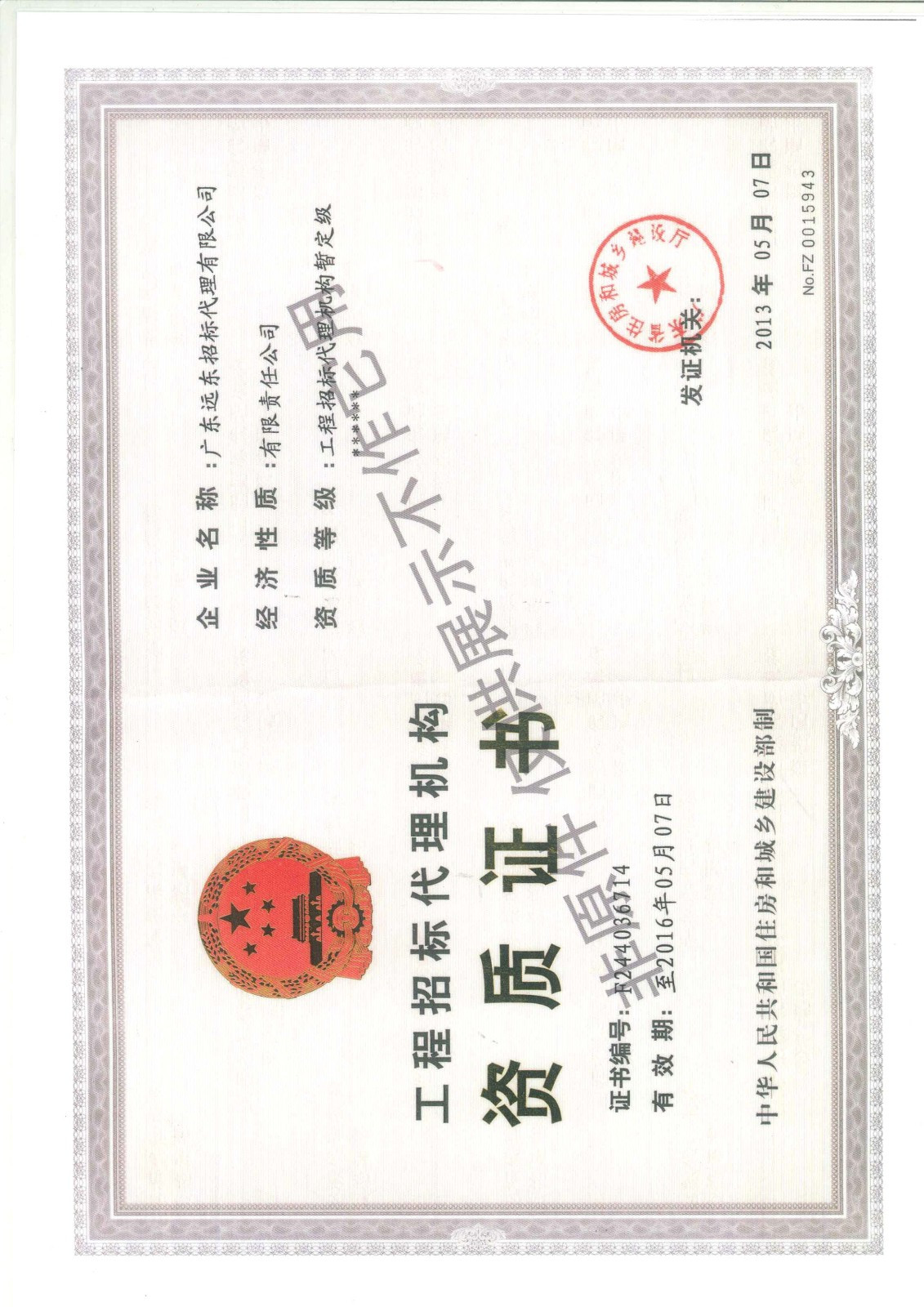 廣東省建設(shè)行業(yè)資信證書(shū)暫定級(jí)